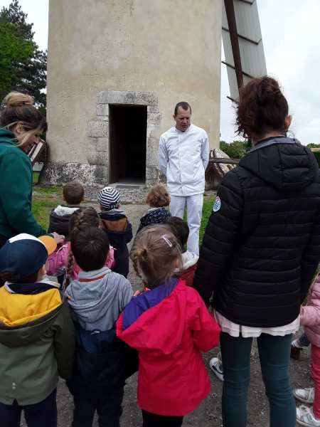 Lundi 15 mai, pour faire écho à notre travail sur les contes dont « La petite poule rousse », les élèves de PS/ MS sont allés au Moulin des Gourmands à St Révérend.