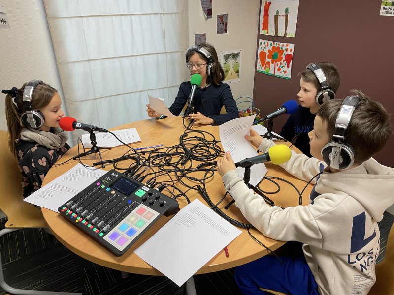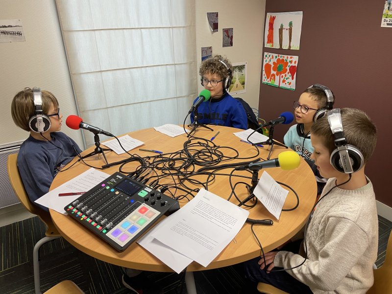 Avant les vacances de Noël, les CE2C sont devenus des journalistes de radio. Ils ont écrit des reportages et se sont enregistrés comme dans un studio de radio. Allez les écouter dans la rubrique Web radio que vous trouverez sur la page d’accueil.