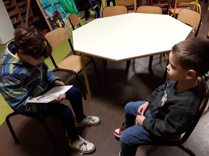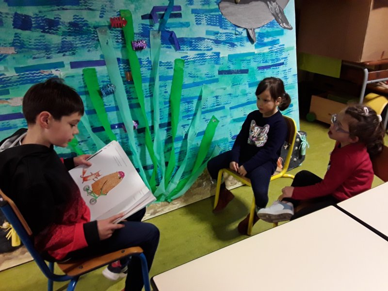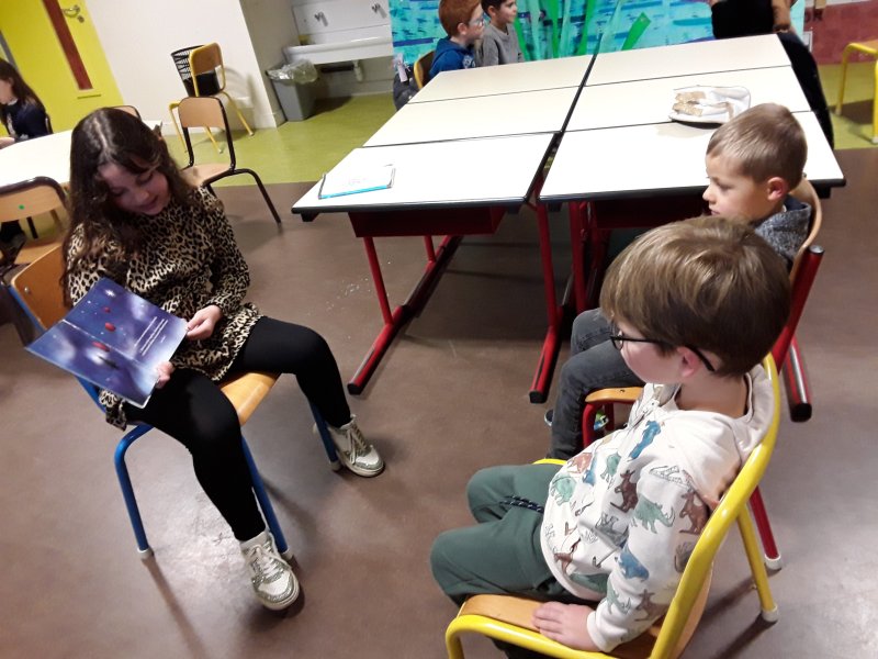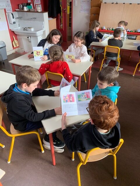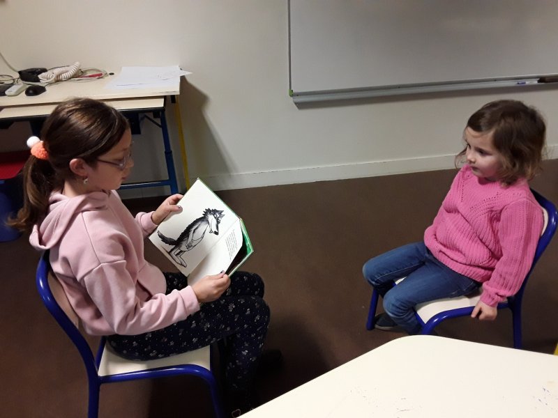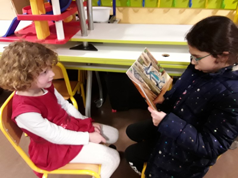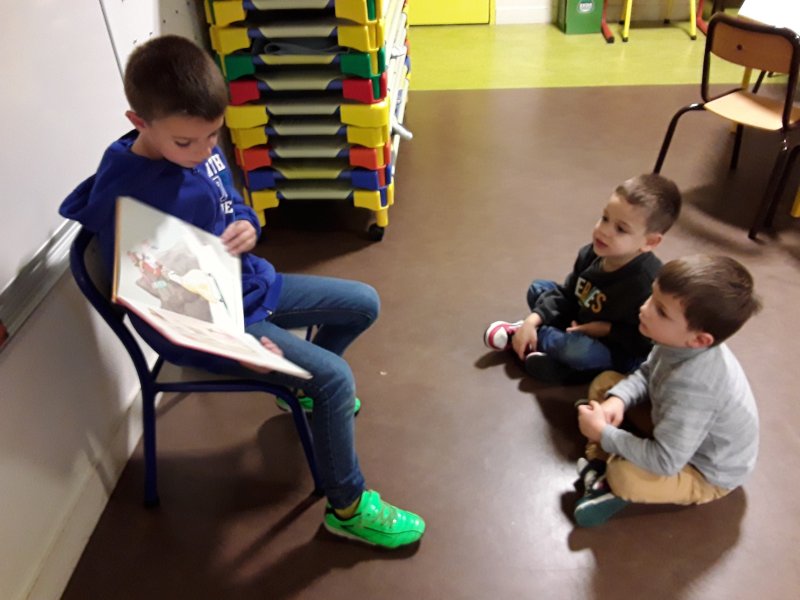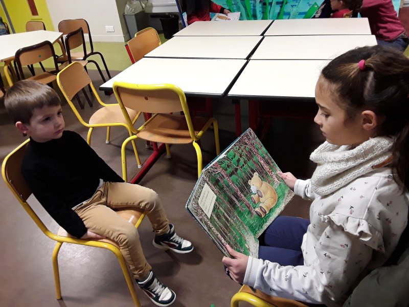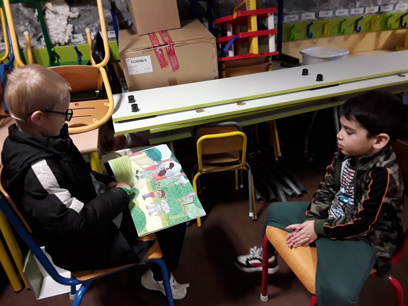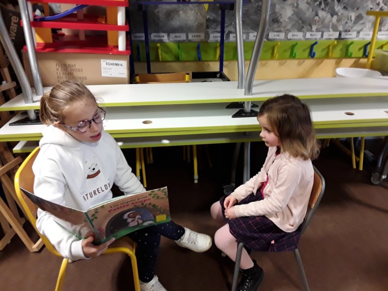 Les élèves ont ensuite eu le plaisir de lire leurs histoires aux enfants de la classe de Frédérique, en MS/GS.
