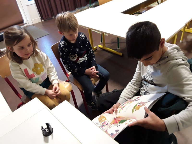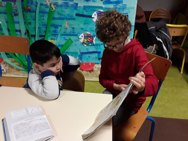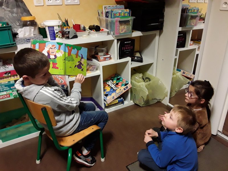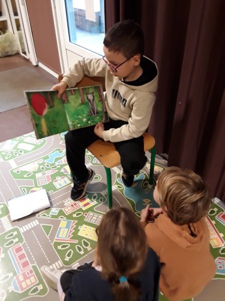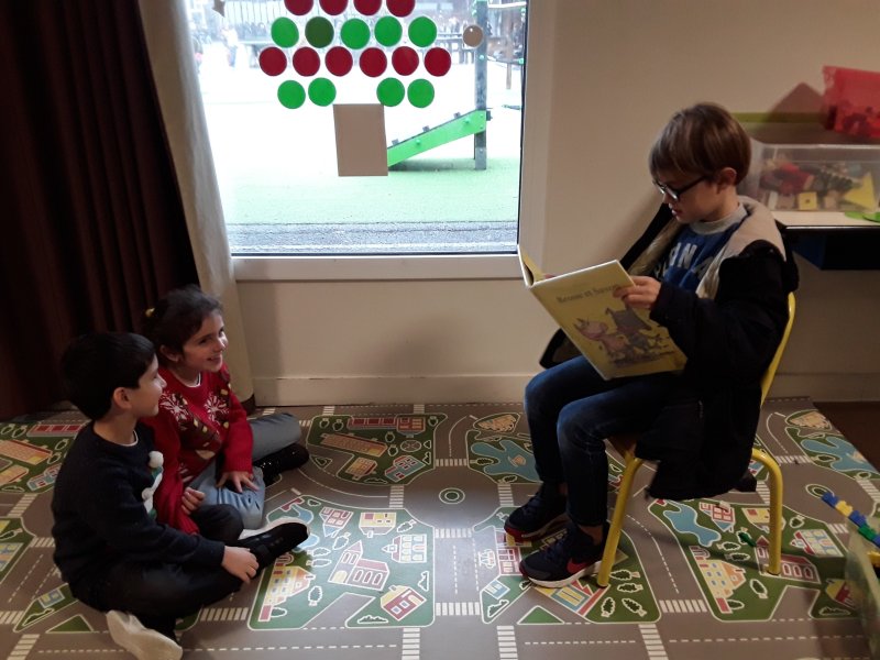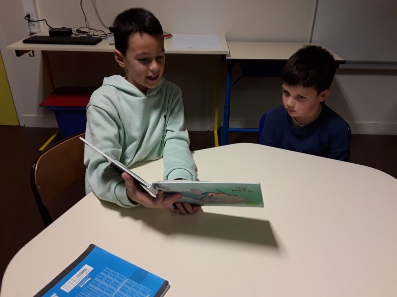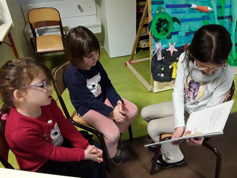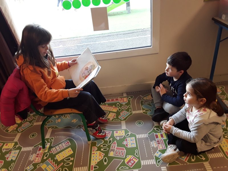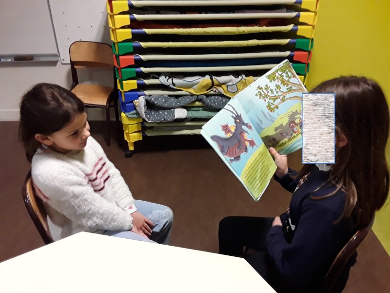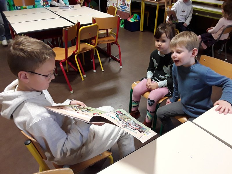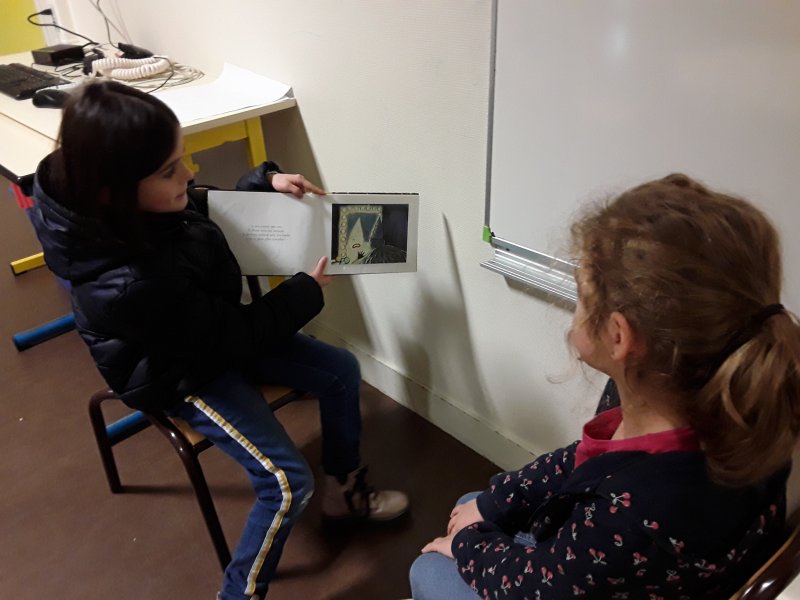 Les élèves ont ensuite eu le plaisir de lire leurs histoires aux enfants de la classe de Frédérique, en MS/GS.